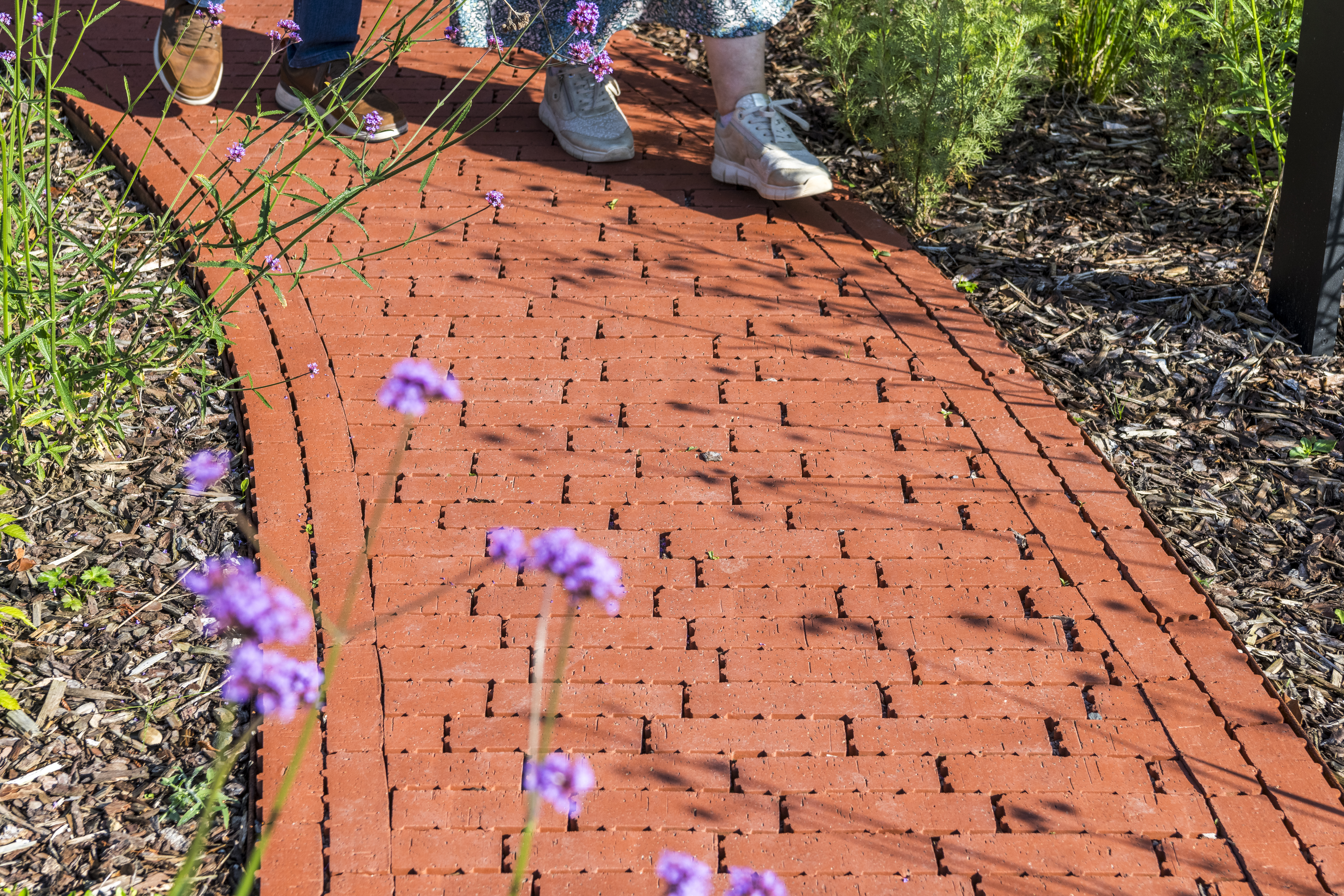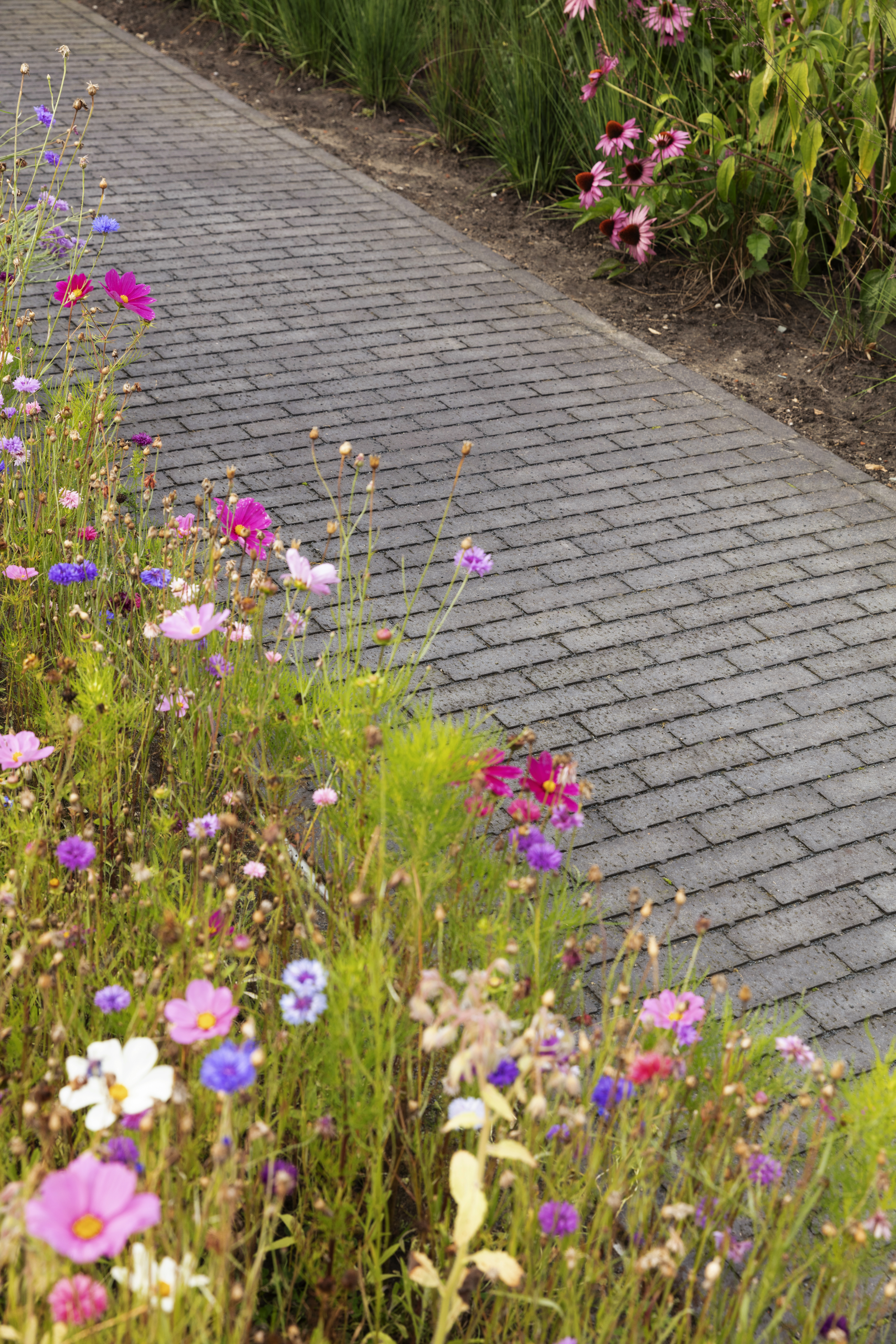 Passaqua est à ce jour le seul pavé en terre cuite belge qui répond à la définition officielle d’un revêtement drainant. Lors de la pose, des entretoises intégrées créent des joints de 6 mm de largeur. Ainsi, au moins 10 % de la surface totale reste ouverte, ce qui permet à l’eau de pluie de s’infiltrer facilement dans le sol. Outre ses atouts en matière de gestion de l’eau, Passaqua se distingue par sa durabilité, sa réutilisation et sa recyclabilité, en totale adéquation avec les principes de construction circulaire.