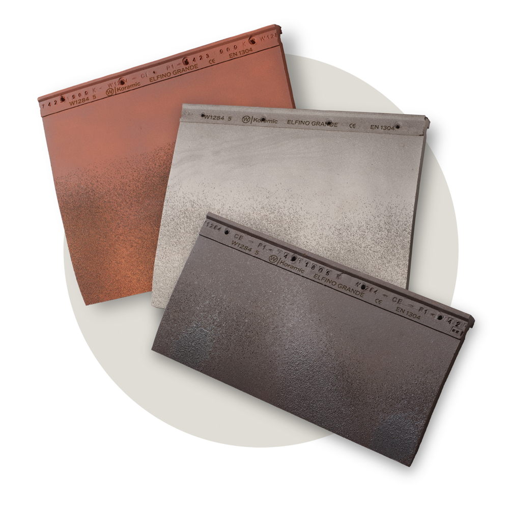 La gamme comprend deux variantes : Elfino Grande (18,4 pièces/m²) pour toitures et façades, et la tuile raccourcie Elfino Grande (28,6 pièces/m²) spécialement conçue pour les façades. Le grand format facilite la pose et limite le nombre de tuiles par mètre carré, tandis que le crochet continu simplifie la mise en œuvre. Produites localement à partir de matières premières naturelles et recyclables, ces tuiles sont démontables et donc parfaitement réutilisables.